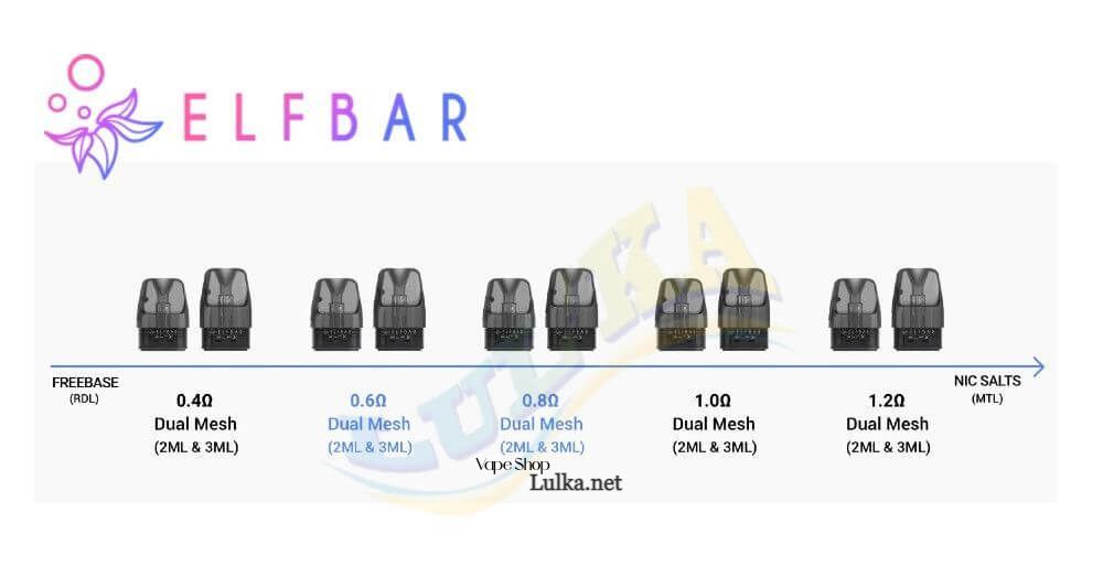 Собственная картриджная система ELFBAR ELFX POD kit пролонгированного действия имеет встроенный испаритель в виде двойной сетки. На выбор предлагается пять моделей, но в комплекте будет только две. Картридж порадует быстрой верхней заправкой. Объем – 3 мл.