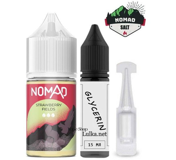 Жидкость Nomad Salt поставляется в виде набора компонентов для самостоятельного смешивания солевой жидкости, в который включены: аромабустер солевой Nomad Strawberry Fields во флаконе 30 мл, который содержит 12 мл фирменного микс-ароматизатора, глицерин 15 мл. и никобустер на основе солевого никотина, что при смешивании позволяет получить готовую жидкость Nomad 50 мг/мл (Salt Nic 5%). Возможность добавления никобустера означает, что вы можете сделать жидкость Nomad с крепостью, которая вам больше подходит. Например, при добавлении половины объема никобустера, вы получите крепость 25 мг/мл. Солевой никотин обеспечивает мягкий удар по горлу и более быстрое усваивание организмом, что позволяет быстро утолить тягу к никотину. Nomad на солевом никотине имеют соотношение VG/PG 50/50. Мы рекомендуем использовать их для заправки Под системы.