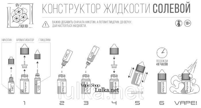 - Солевой никобустер (Крепость 200 мг/мл) 7,5 мл. Крепость готовой жидкости при смешивании 50 мг/мл Salt Nic.
