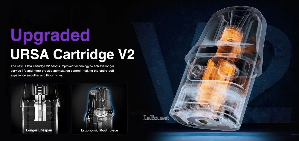 Покращена технологія вбудованого випарника: У картриджі урса в2 виробник Лост вейп впровадив передову технологію випаровувача, яка покращує ефективність поглинання та випаровування рідини для електронних сигарет. Це призводить до кращої смакопередачі та довговічності служби змінного картриджа.