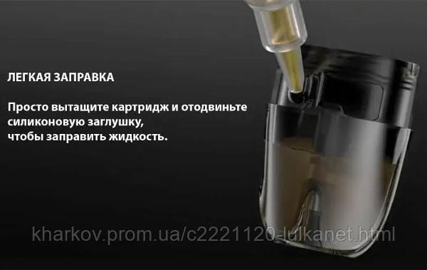 Завдяки зручному розміщенню клапана заправки, який знаходиться на бічній частині під спеціальною силіконовою заглушкою, картридж Voopoo Argus Pod легко заправити і це не займе багато часу. Перед початком експлуатації рекомендуємо зробити заправку і відкласти картридж на п'ять хвилин, щоб бавовна добре просочилася рідиною.
