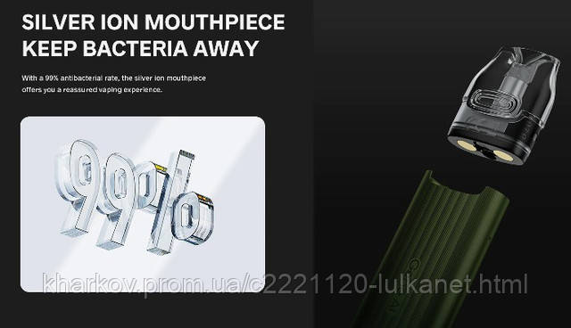 Vmate V2 Cartridge мають спеціальне покриття мундштука з іонами срібла, яке забезпечує антибактеріальний захист і, отже, велику безпеку при парінні, якщо ви любите носити електронну сигарету у сумці чи кишені.