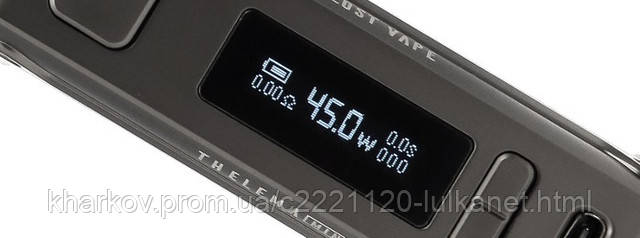 За живлення відповідає вбудована батарея на 1500 мАг. Максимальна потужність Thelema Mini становить 45W. Також передбачено стандартний набір захисту.