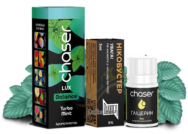 - Ароматизатори Chaser Lux Turbo Mint 12 мл. у флаконі 30 мл;