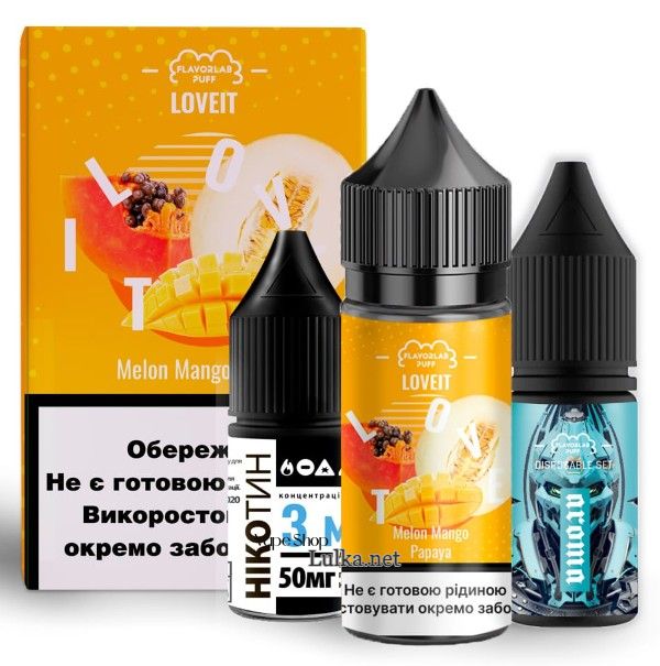 Ви можете купити набір компонентів для рідини на сольовому нікотині Melon Mango Papaya від Love IT: