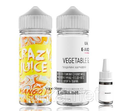 Набори для самозамішування органічної рідини Crazy Juice - певний набір компонентів, змішавши які ви отримуєте рідину Crazy Juice 120 мл. з обраною міцністю у співвідношенні VG/PG 70/30. Вміст нікотину (на вибір): 0 мг/мл, 3 мг/мл, 6 мг/мл, 9 мг/мл. У комплект включені такі компоненти:
