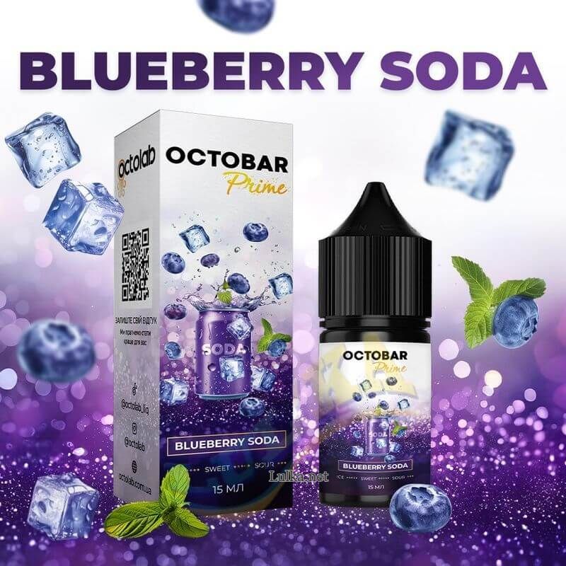 Octobar Prime Salt Blueberry Soda - яскравий і освіжаючий смак, який поєднує в собі соковиту насолоду чорниці з ігристим відчуттям содової, і все це з крижаним охолоджуючим ефектом.