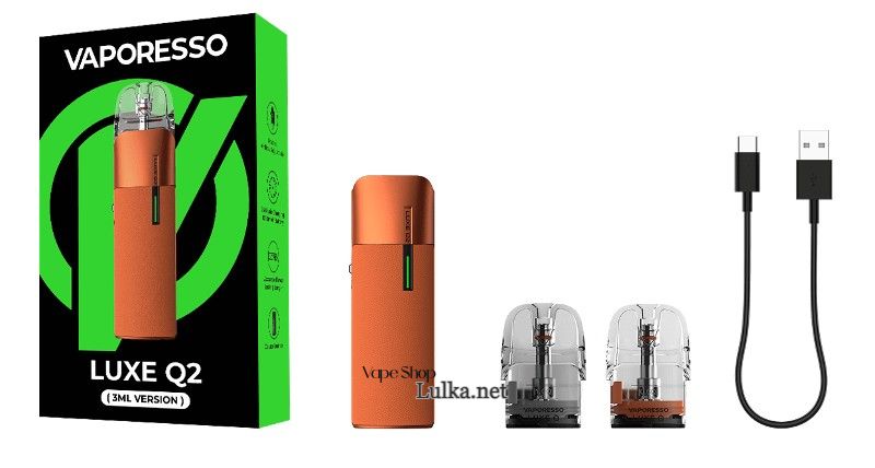 У стартовий набір Vaporesso Luxe Q2 Pod Kit виробник включив:
