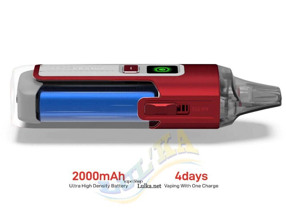 Акумулятор: Вбудований акумулятор ємністю 2000mAh забезпечує тривалий час роботи, дозволяючи насолоджуватися вейпінгом без необхідності частого заряджання. Батарея підтримує швидку зарядку, що дозволяє максимально швидко повернути пристрій.