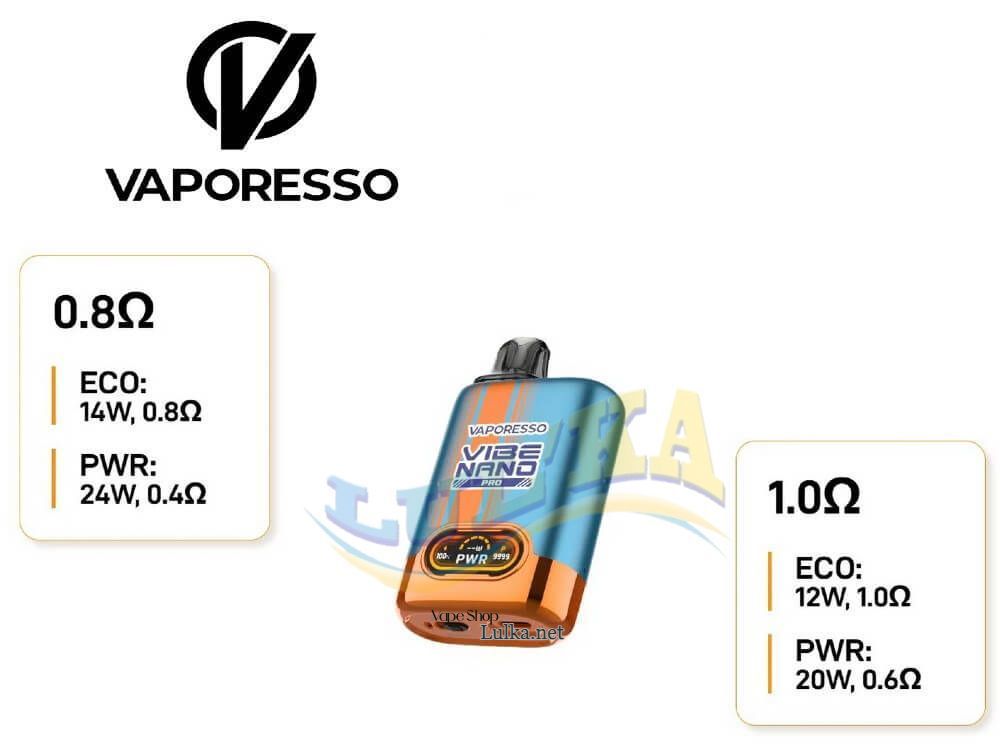 У стартовий набір Vaporesso VIibe Nano Pro Kit виробник увімкнув: