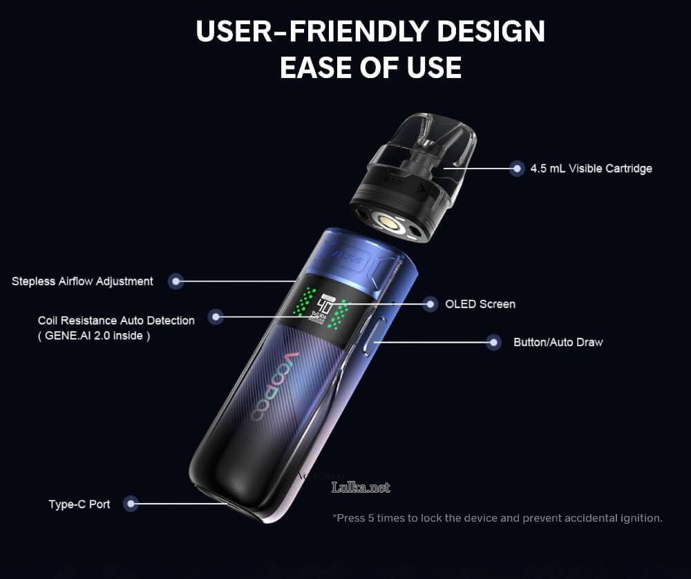 Захист та безпек : Voopoo Argus E40 оснащений безліччю захисних функцій, включаючи захист від короткого замикання, захист від перезаряду та захист від перегріву. Ці функції забезпечують безпечне використання пристрою та продовжують його термін служби.