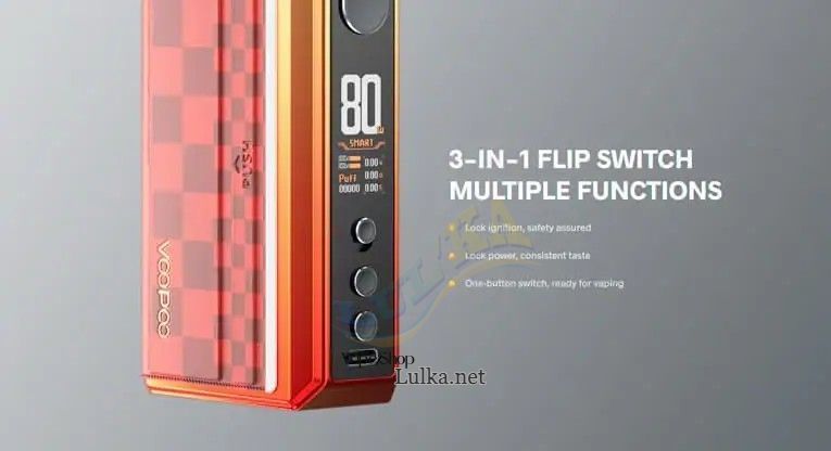Voopoo Drag 5 177W Box Mod оснащений функціональними та зручними кнопками управління, які забезпечують повне налаштування та контроль над пристроєм. Пристрій також підтримує функції блокування, щоб запобігти випадковим натисканням та зміни налаштувань.
