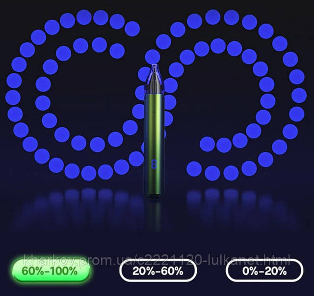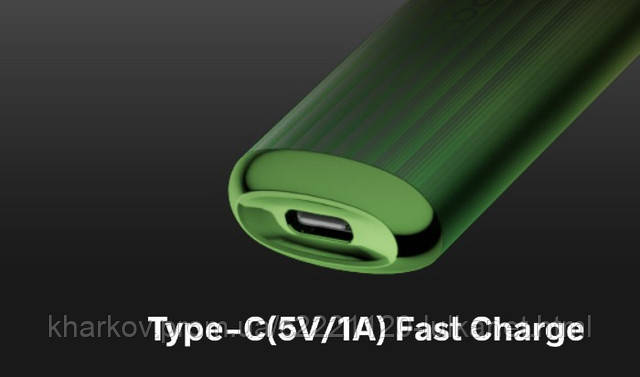 На вузькій грані є LED-індикатор у вигляді символу нескінченності контролю рівня заряду. Активація пристрою – затяжкою.