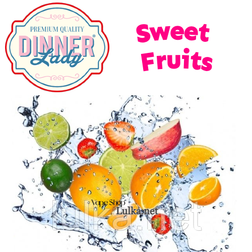 Ароматизатор Dinner Lady Sweet Fruits – восхитительный микс из ягід, цитрусовых, яблок и экзотических фруктов. В итоге получаем насыщенный кисло-сладкий коктейль с очень необычным вкусом.