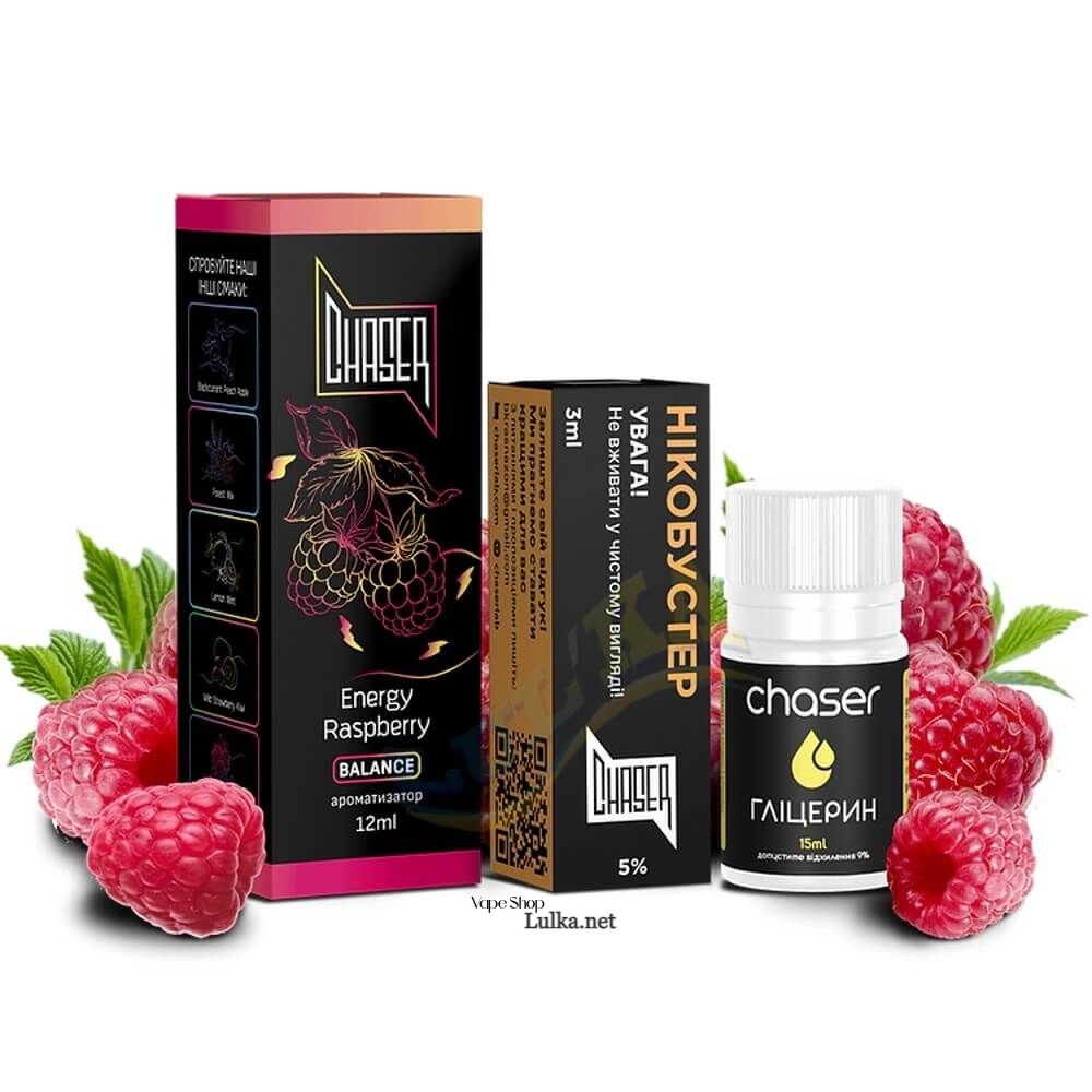 - Ароматизатор Chaser Energy Raspberry 12 мл. во флаконе 30 мл;