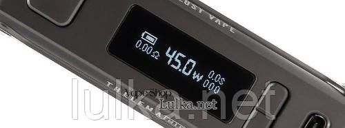 За питание отвечает встроенная батарея на 1500 мАч. Максимальная мощность Thelema Mini составляет 45W. Также предусмотрен стандартный набор защиты.