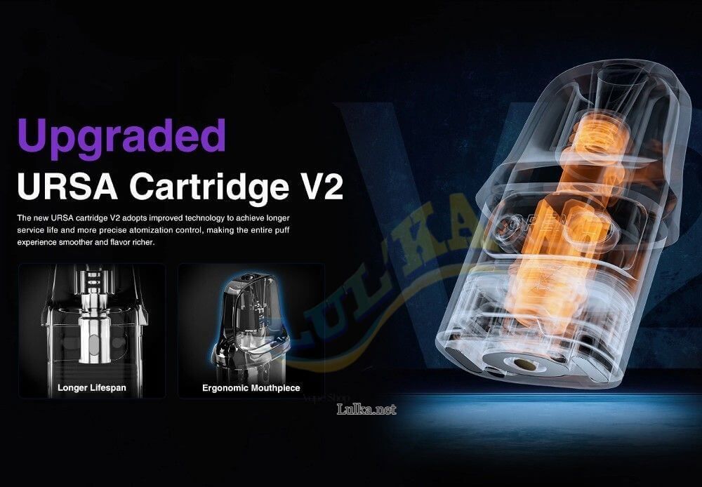 Lost Vape Ursa Nano Pro 2 Kit обладает полной совместимостью с картриджами Ursa и картриджами Ursa V2, что значительно расширяет его возможности и делает устройство более универсальным. Ursa V2 картриджи являются модернизированной версией картриджей серии Ursa. Они оснащены удобной системой боковой заправки и объемом 2,5 мл.