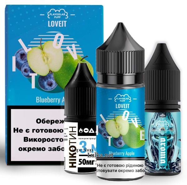 Вы можете купить набор компонентов для жидкости Чернки Яблоко на солевом никотине от Love IT :