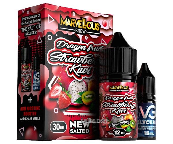 Marvellous Brew Salt Kit Dragon fruit Strawberry Kiwi - нежная тропическая питахайя, сладкая клубника и кисленький киви.