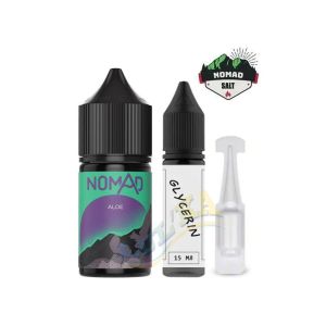 Nomad Salt поставляется в виде набора компонентов для самостоятельного смешивания жидкости, в который включены: аромабустер солевой Nomad Aloe во флаконе 30 мл, который содержит 12 мл фирменного микс-ароматизатора, глицерин 15 мл. и солевой бустер, что при смешивании позволяет получить жидкость Aloe Nomad 50 мг/мл (Salt Nic 5%). Возможность добавления бустера означает, что вы можете сделать жидкость Nomad с крепостью, которая вам больше подходит. Например, при добавлении половины объема бустера, вы получите крепость 25 мг/мл.