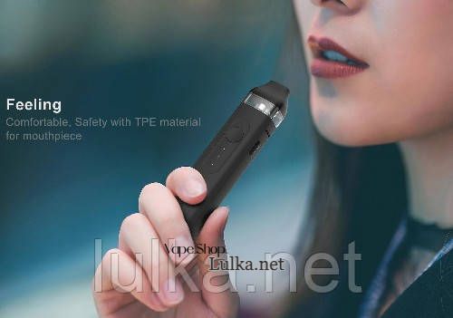 Nevoks Feelin Pod System Kit выполнен в формате небольшого бруска, поэтому практичный и эргономичный. На лицевой части выделено небольшое углубление, где находится кнопка включения (также девайс активируется затяжкой) и три небольших светодиода.