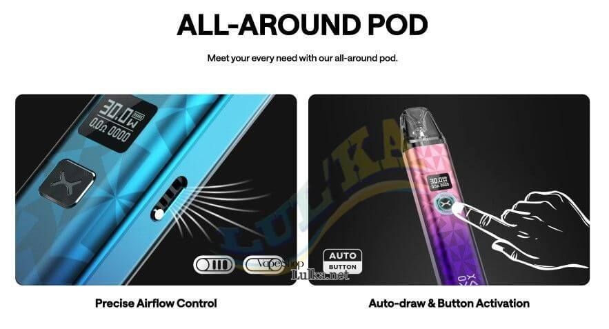 OXVA Xlim Classic оснащена удобными функциями активации и регулировки затяжки, что делает его максимально простым и комфортным в использовании. Многоразовая POD система предлагает два способа активации: автоматическая активация при затяжке (Auto-draw) и активация с помощью кнопки (Button Activation). Эти функции позволяют настроить его под личные предпочтения, обеспечивая гибкость и удобство.