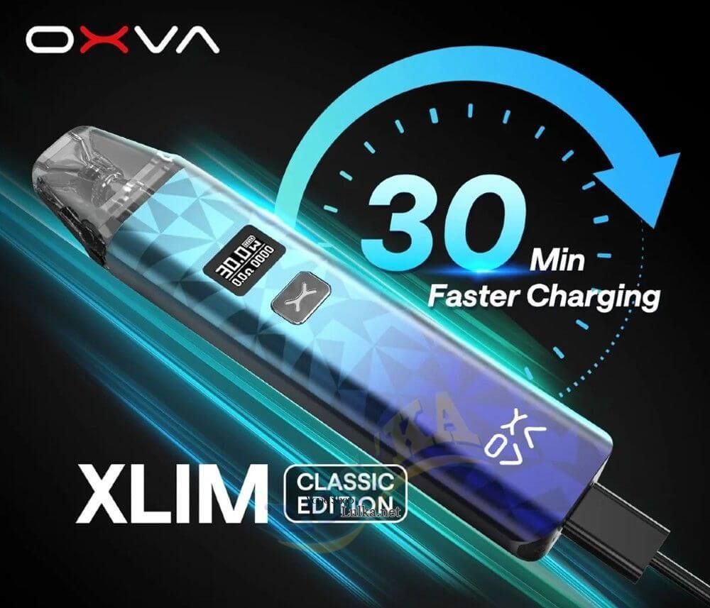 OXVA Xlim Classic Edition Kit оснащён встроенным аккумулятором ёмкостью 1000 мАч, что обеспечивает отличное время работы и комфортное использование в течение дня без частой подзарядки. Благодаря USB Type-C зарядка устройства занимает примерно 30 минут.