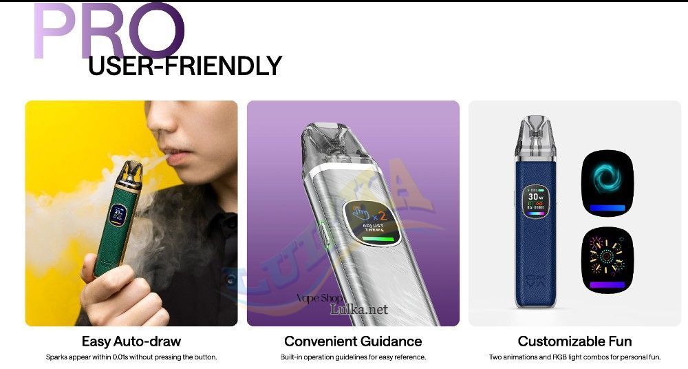 OXVA Xlim Pro 2 переопределяет взаимодействие с пользователем с его эксклюзивным 0,56-дюймовым эллиптическим экраном, сочетающим практичность с передовым дизайном. Эллиптическая форма отличает его от традиционных прямоугольных экранов, придавая ему современный и изысканный вид. Этот дисплей не только компактен, но и четок, предлагая визуально ошеломляющий интерфейс, который улучшает общую эстетику устройства. Интуитивный интерфейс параметров позволяет легко настроить устройство, OLED-дисплей отображает текущую мощность, чтобы вы всегда были в курсе своих настроек.