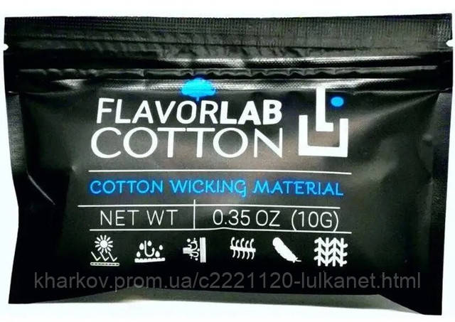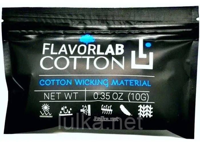 Flavorlab Cotton – органический хлопок, предназначенный для обслуживания атомайзеров RTA, включая RDA и RDTA. Каждая упаковка FlavorLab Cotton содержит предварительно нарезанные полоски, позволяющие легко обрезать и установить их в атомайзер.
