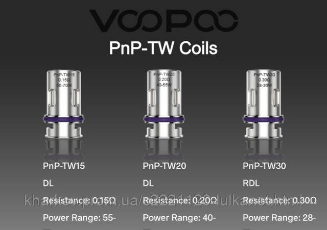 Испаритель PnP-TW15 предназначен для использования на мощности от 55 до 70 Вт. Voopoo PnP-TW15 Coils сопротивляется 0,15 Ом, что дает пользователю электронных сигарет Voopoo кальянную тягу (DL) . Мы рекомендуем сочетать эти испарители с жидкостями с соотношением VG/PG 70/30 ( набором для приготовления жидкости ).