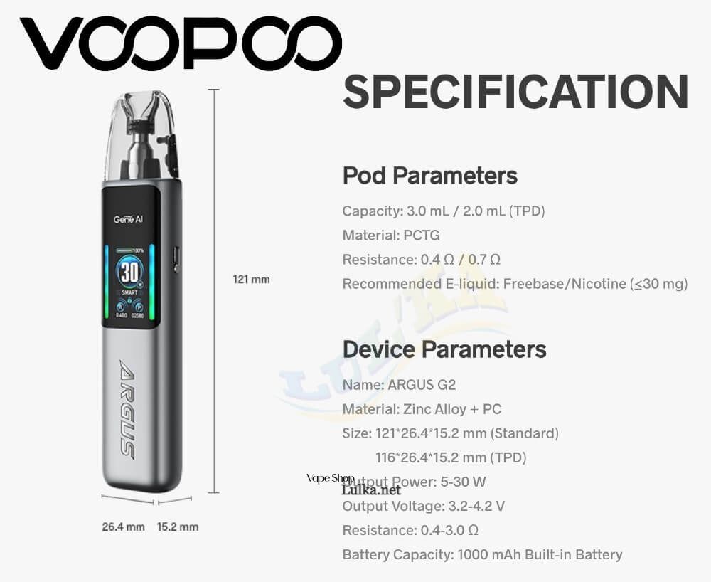 Совместимость с картриджами:Voopoo Argus Pod Cartridge