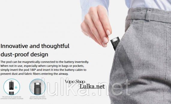Фіксується Upends Upox Pod Cartridge на магніті.