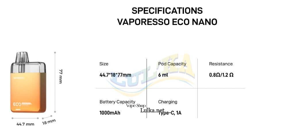 Технічні характеристики Vaporesso ECO Nano