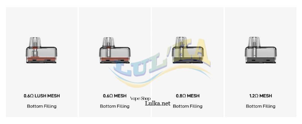 Опір картриджа: 0.6Ω LUSH Mesh (у комплекті), сумісні також 0.8Ω та 1.2Ω