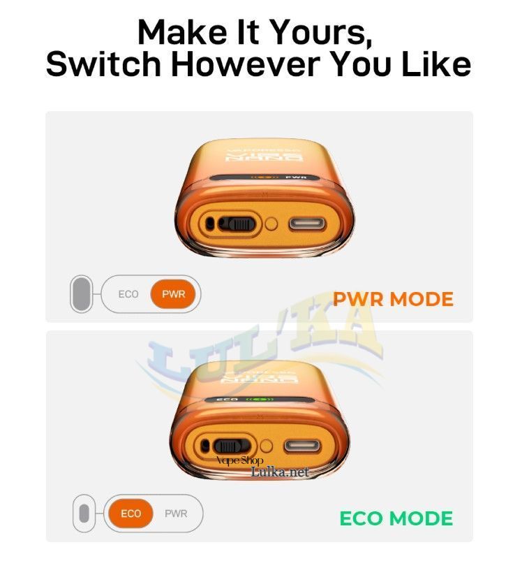 Чіп AXON забезпечує розумну адаптацію потужності, а в парі з VAPORESSO Dual Mesh реалізує миттєве перемикання між режимами ECO та PWR - одним рухом. Одночасне регулювання потужності та обдуву дозволяє легко перейти від тугої MTL-затяжки до вільної RDL, підлаштувавши POD-систему під будь-який стиль. Потрійний слайд скидає лічильник затяжок.