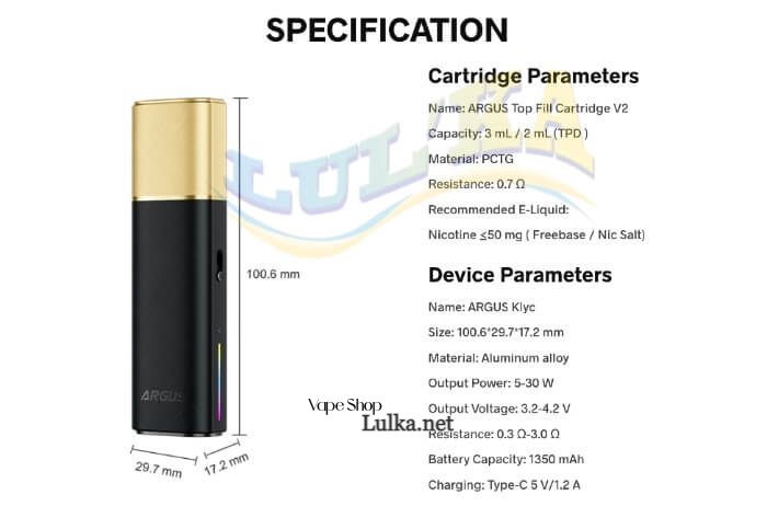 Сумісні також картриджі попереднього покоління ARGUS Top Fill. Стартовий набір Voopoo Argus Klyc дає простий вибір під ваш стиль і улюблену рідину.